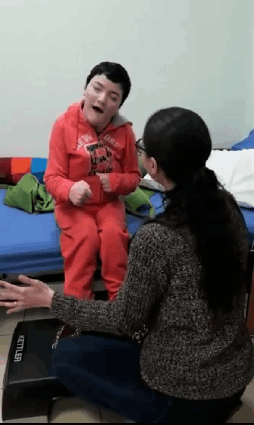 One month after starting the MOVE method, Shlomit was able to sit in a typical chair with minor support and her muscle tone decreased. After two months we received a video of Shlomit. It was very emotional for us because she was sitting alone for the first time in her life on the edge of a bed without support. We were thrilled.