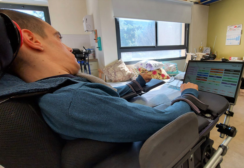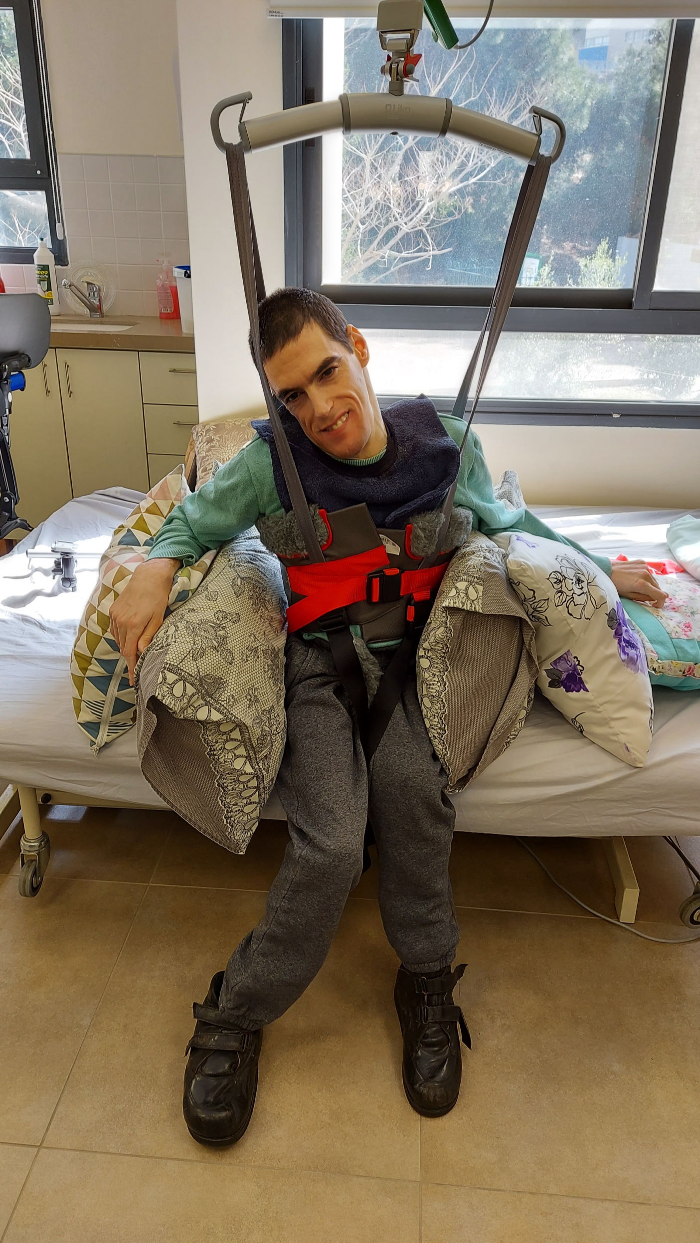 Tom is a thirty-year-old man with cerebral palsy, spastic quadriplegia and high muscle tone. He lives in a housing complex in Kibbutz Mezraa', and has been attending Ma’arag center 3 days a week since 2011. He is confined to a wheelchair and needs full help with all ADL tasks: eating, dressing, personal hygiene, transitions and toileting.